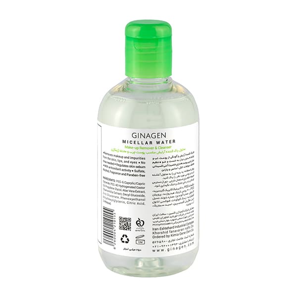 محلول پاک کننده آرایش میسلار واتر ژیناژن مناسب پوست چرب و مختلط