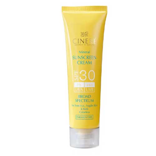 کرم ضدآفتاب بی رنگ مناسب پوست های حساس، نازک و کودکان با SPF 30 سینره